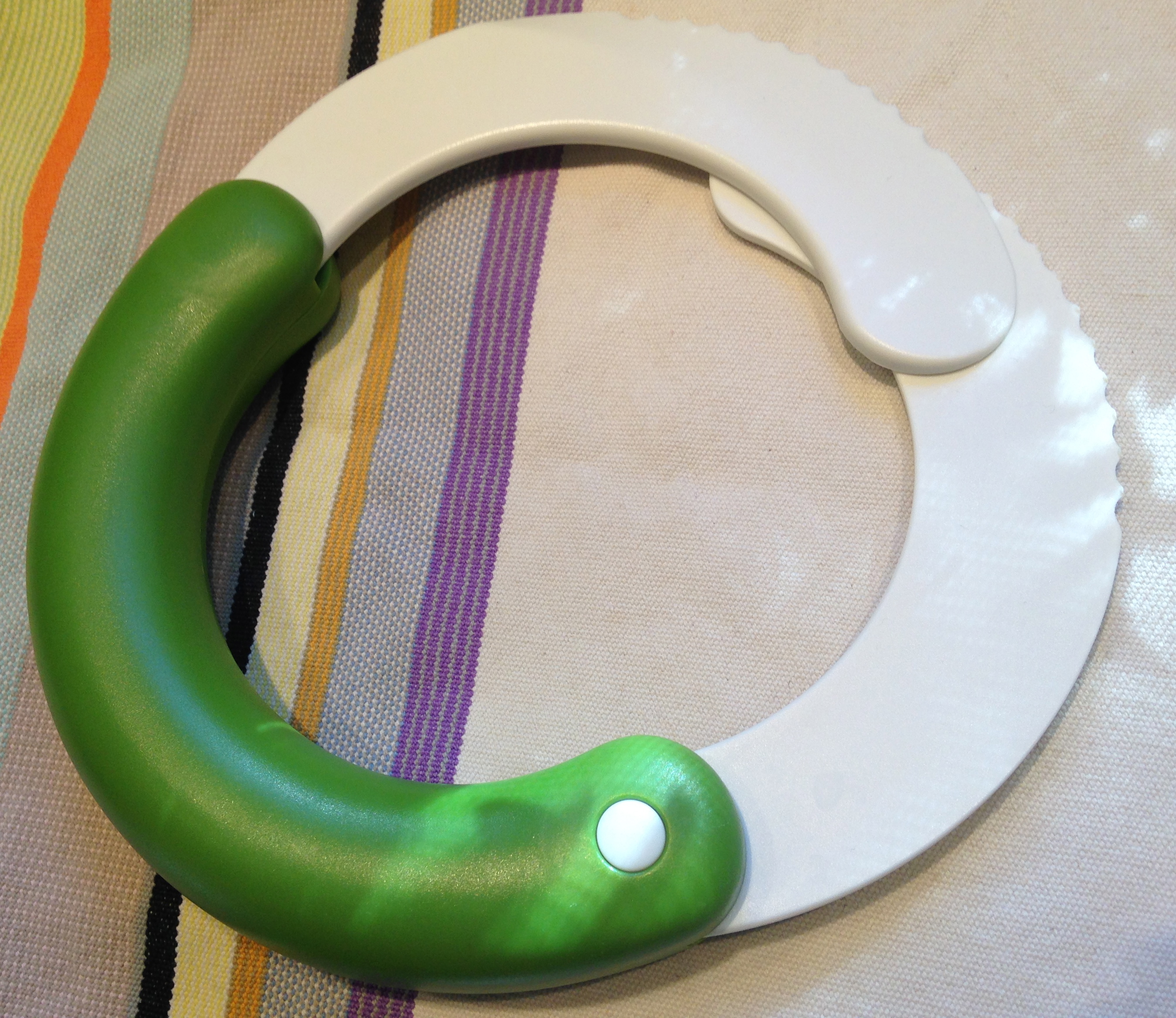 And, please put one of these on your list for Santa — Chef’n “Herb ‘n Shears” from http://www.jcp.com. It has made it so easy for me to make salads we really love. It’s serrated plastic, so use it right in the salad bowl and just push down to chop. Mmm, salad you can eat with a spoon.